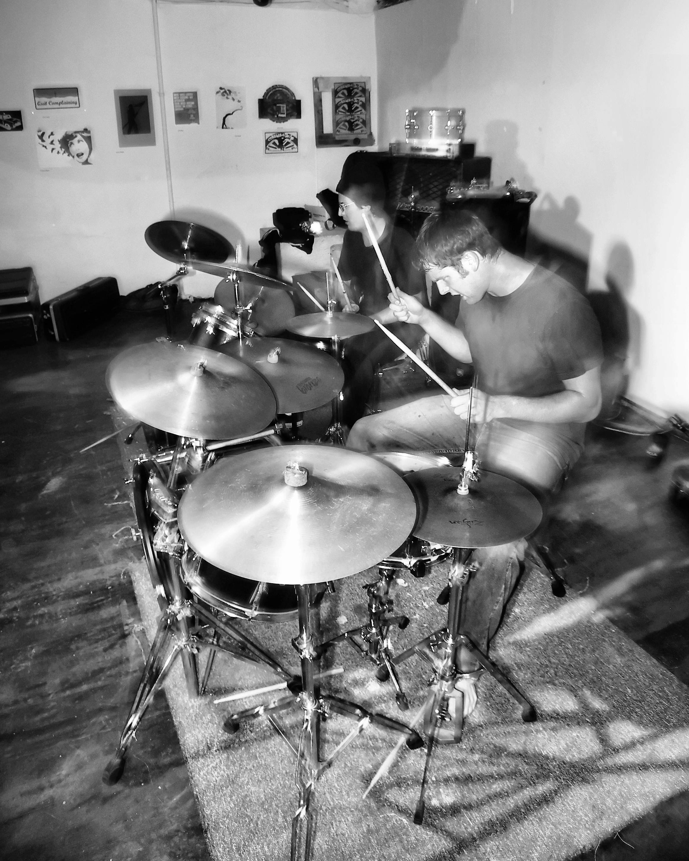 Jacob Felix Heule and Jay Korber explore the extreme sounds that can be wrenched from their instruments through brute force – screaming through saxophones, throwing drums and other such impolite extended techniques. The doubled instrumentation provides a situation to explore playing contrasting and complimentary styles on like instruments.